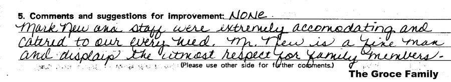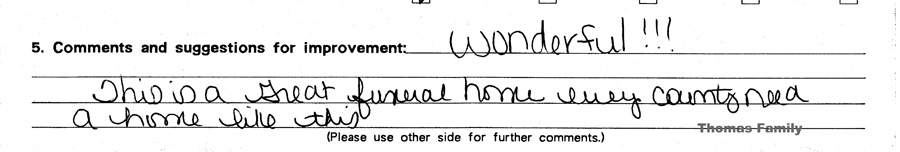 We are always interested in hearing from the families that we serve. Please take a moment to let us know how well we served you in your time of need. We very much appreciate your feedback.